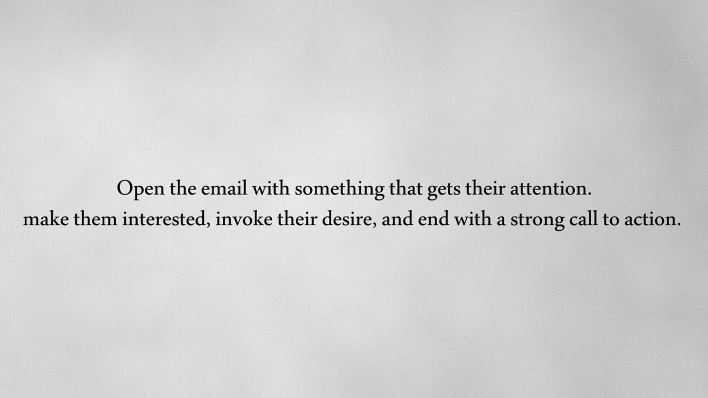 Now in 15 minutes, you’ll have a first good draft. All you need to do is follow a simple formula. Attention, interest, desire and action. as you can see in the picture below.